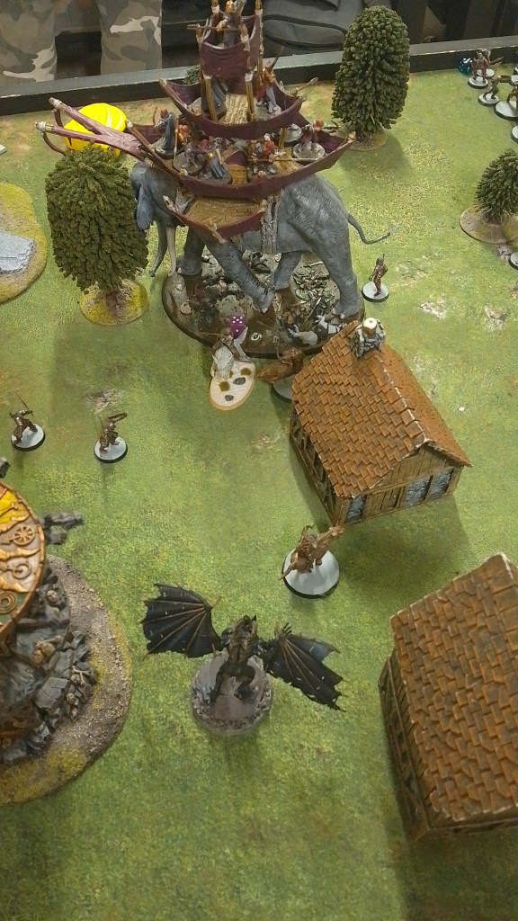 The knights continued to hold the ground against the chariots. Passing all terror checks, and saves, and only breaking after two rounds of combat. The general, being the only survivor of the unit fled, stopping short of his veteran infantry, meaning the overrunning Chariots ran him down…but also didn’t overrun into the infantry. Again denied their impact hits!